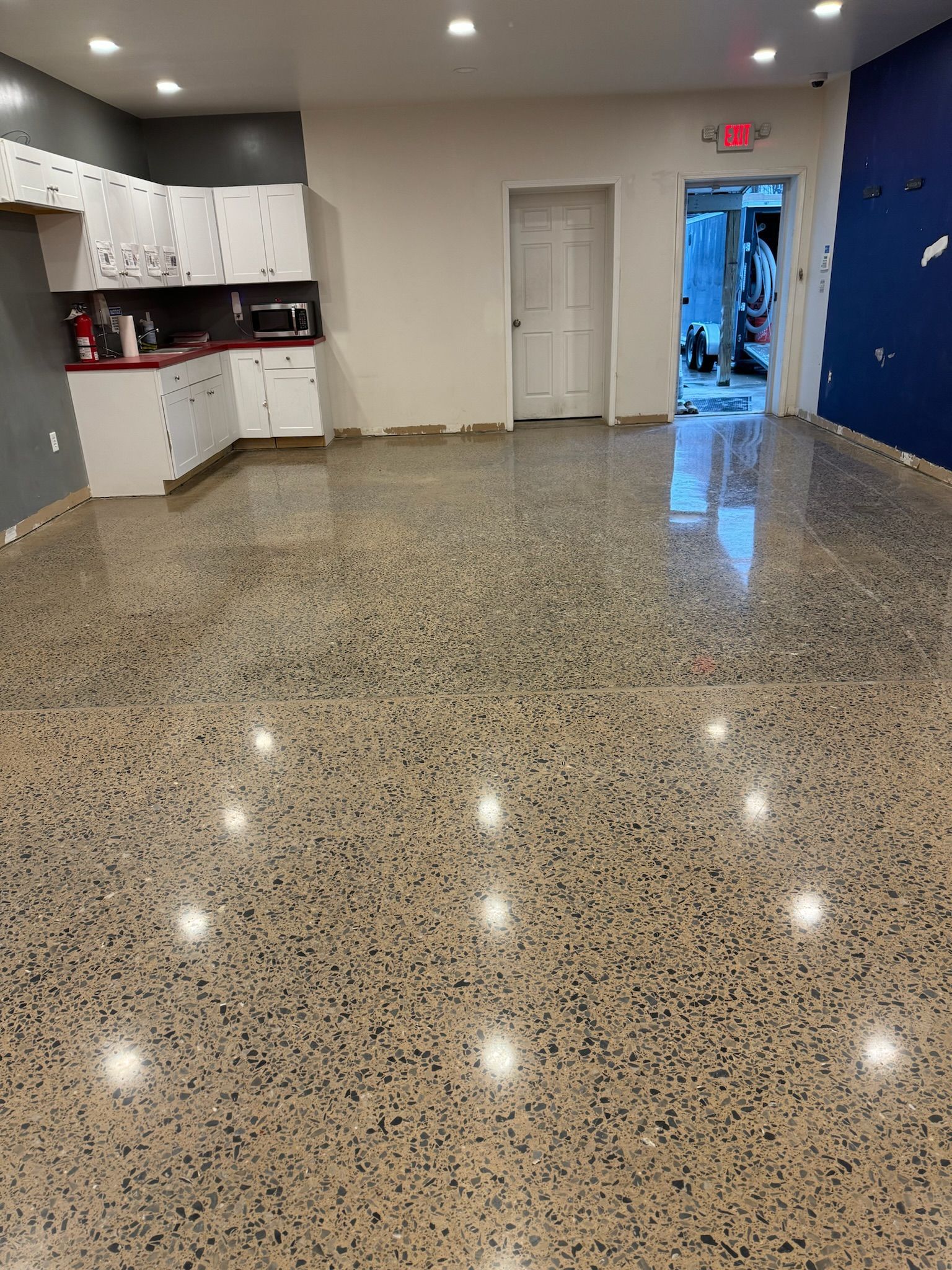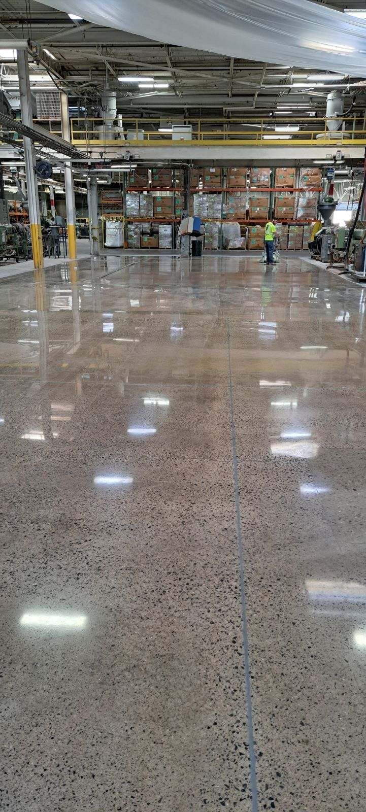 - Exceptionally Low Maintenance — Once polished, the non-porous, dust-proof floor requires only routine sweeping and occasional mopping with a neutral cleaner—no waxing, stripping, recoating, or special sealers needed. Epoxy systems often demand more vigilant care to prevent scratching, yellowing (from UV), or touch-ups, adding ongoing time and cost.