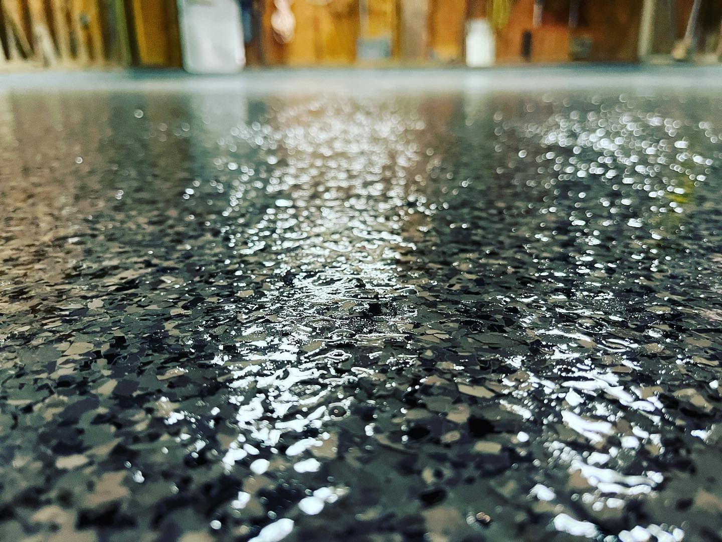 The full broadcast flake system is the gold standard for garage floors and light industrial applications — and ours goes further than most. We start with a moisture vapor barrier epoxy rated up to 22 PSI against hydrostatic pressure, meaning it's engineered to hold back moisture from below before it ever becomes a problem.