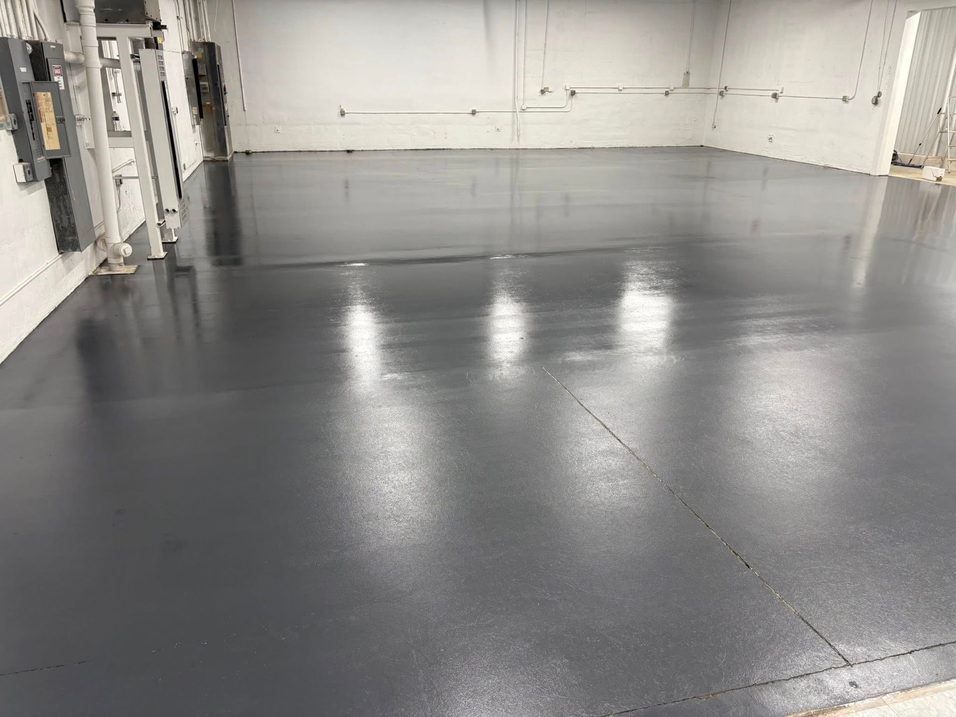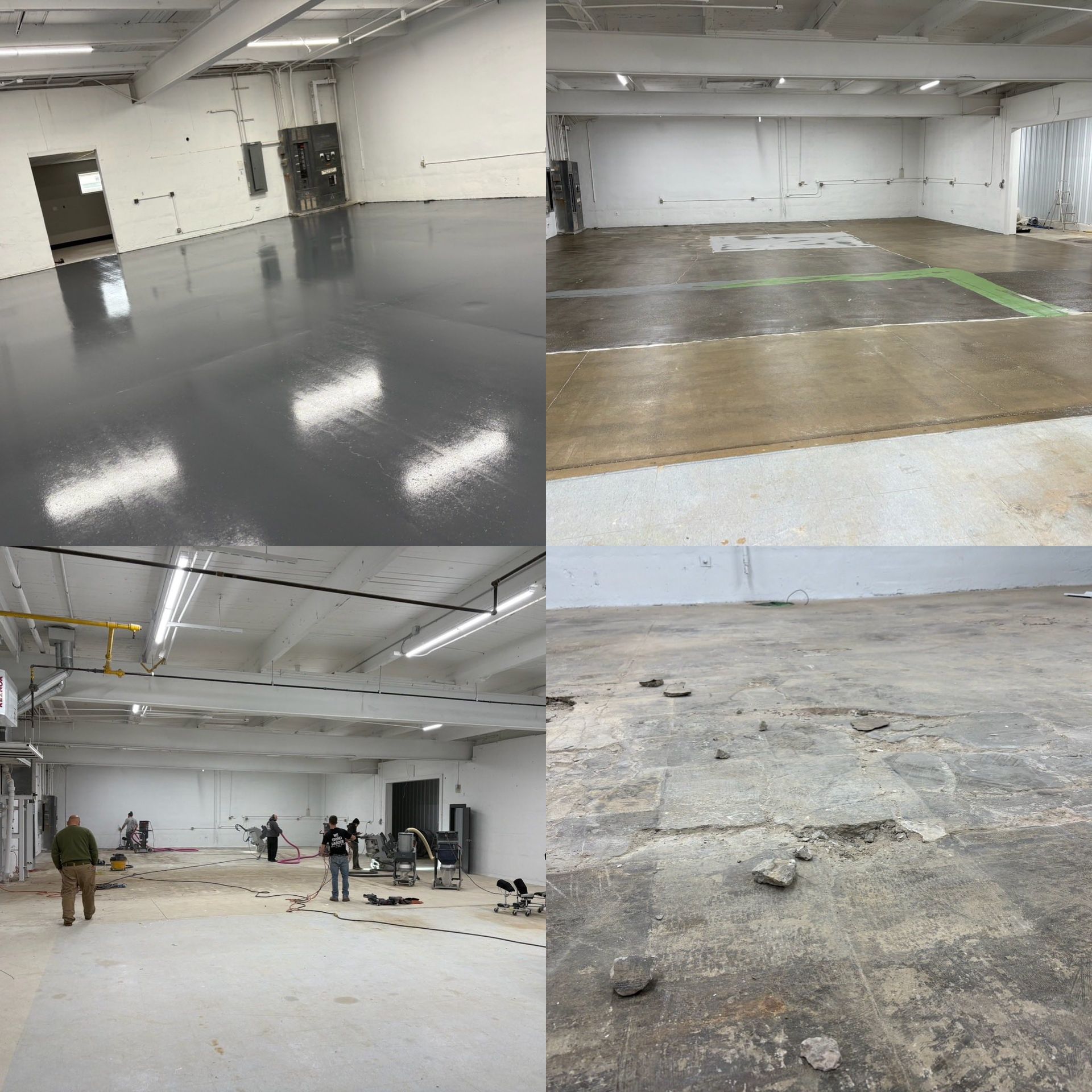 We had the opportunity to partner with Sean Seifert, an outstanding general contractor and an absolute pleasure to work with. The existing floor was anything but simple: it consisted of nine different concrete pours, and a massive section had suffered severe heat damage from the previous tenant’s heavy machinery.